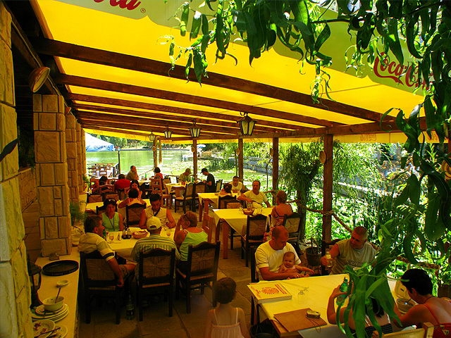 La restaurantul, cu sepecific pescaresc de pe insula, puteti incerca atat preparate exotice, fructe si peste de mare, cat si peste romanesc.